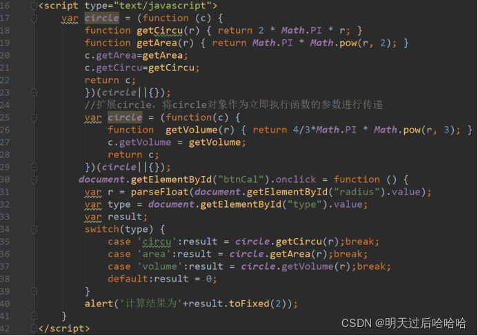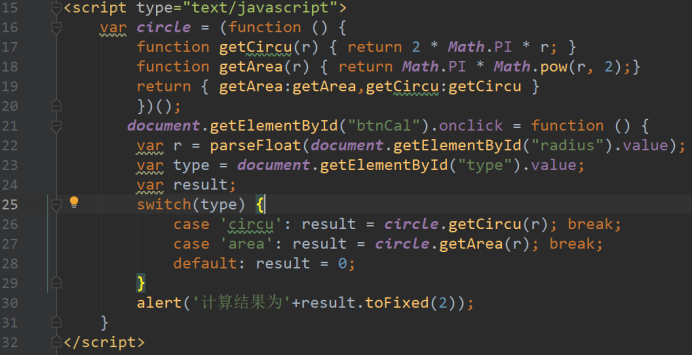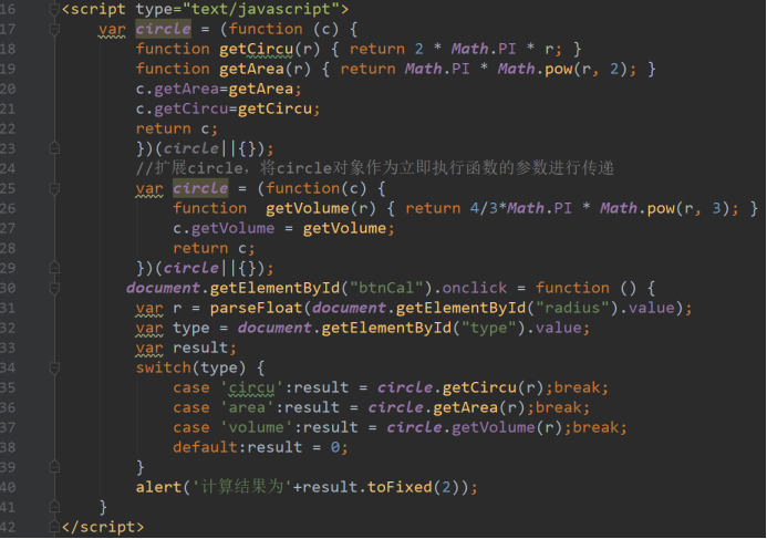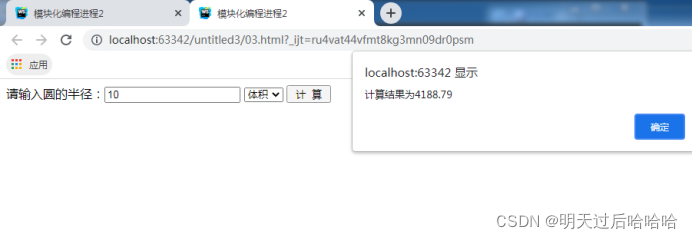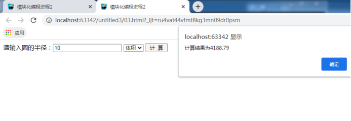 在实验二的基础上添加一个计算球体体积的功能球体的计算表达式:4/3*Math.PI * Math.pow(r, 3)