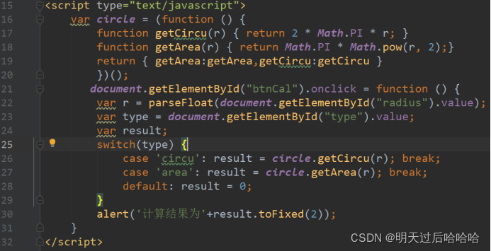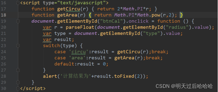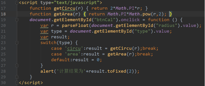 【实验一】:圆周长面积的计算,一个下拉列表框,用于选择计算圆的周长或者是面积,一个点击按钮进行计算