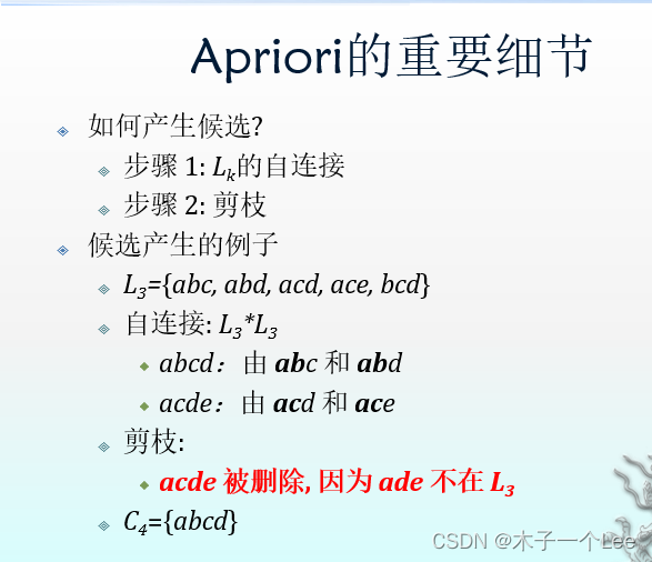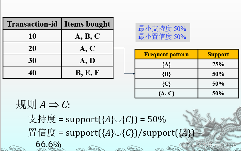 则支持度=3/5=0.6置信度=0.6/(4/5)=0.75