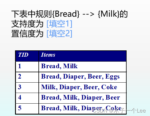 求支持度找面包和牛奶同时出现的次数,求置信度还需要前者(面包)的出现次数