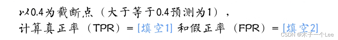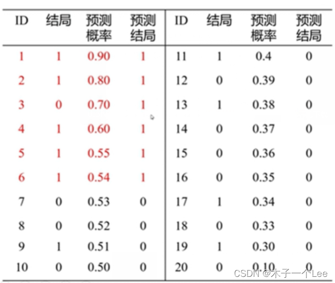 得出真正例率TPR=7/(7+3)=0.7,假例率TPR=4/(4+6)=0.4
