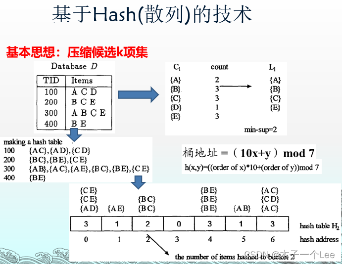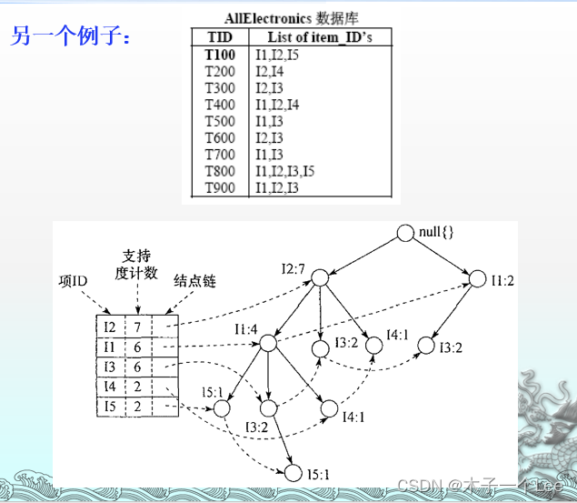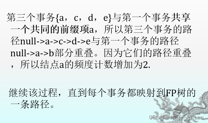 注意:尽管前两个事务具有一个共同项b,但是它们的路径不相交,因为这两个事务没有共同的前缀.
