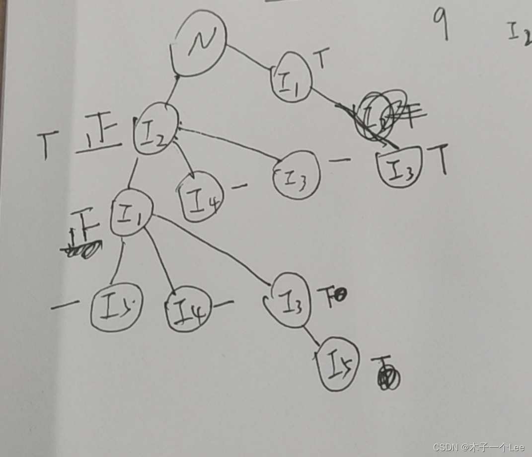 读入第二个事务{b,c,d}之后,为项b,c和d创建新的结点集。然后,连接结点null->b->c->d,形成一条代表该事务的路径。该路径上的每个结点的频度计数也等于1.