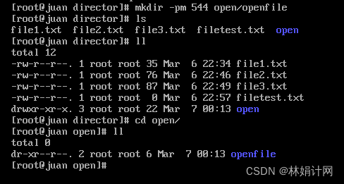 3、在director目录下新建一个open目录,并在open目录下创建openfile目录