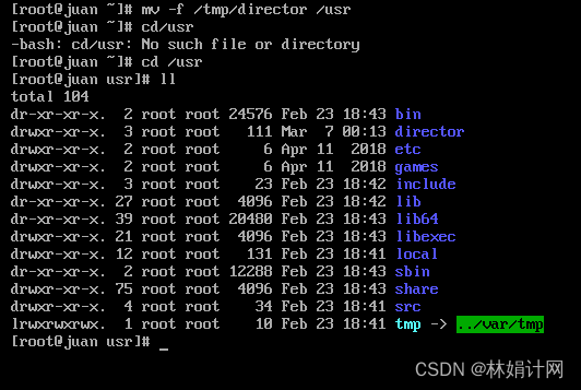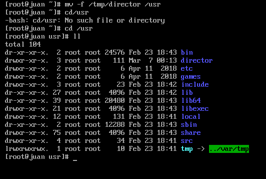 4、将filetest.txt文件备份到/root下,并将/tmp/director目录移动到/usr中。