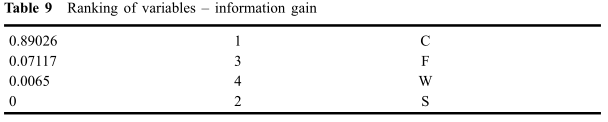 表8显示了J48算法为我们的训练数据集开发的混淆矩阵(参见表4)。训练数据集由64条手动注释的记录(样本)组成。数据集包含20个标记为极差的样本,所有这些样本都通过J48算法在极差状态下正确分类。17个样品标记为不良,所有这些样品均正确分类为不良状态。15个样本中有14个被正确分类为中等状态。十分之九的样本被正确分类为良好状态。有两个示例已注释并正确分类为非常好的状态。
