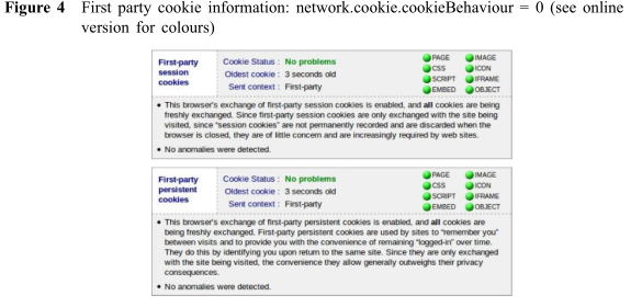 图4和图5显示了屏幕截图,CookieBehavior属性设置为0(默认设置)。