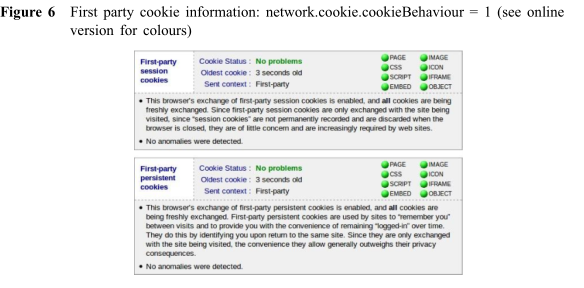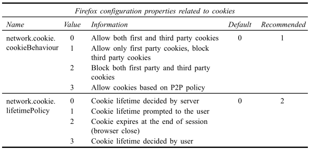 所提议的框架不是在谈论网络浏览器向用户提供的绝对安全,而是在谈论相对安全(相对于同一浏览器的其他配置)。该框架将网络浏览器配置X与配置Y进行比较,并能够说 "就浏览器属性(参数)而言,配置X比配置Y更安全或更好",例如,考虑表12中给出的与cookies有关的两个Firefox参数。