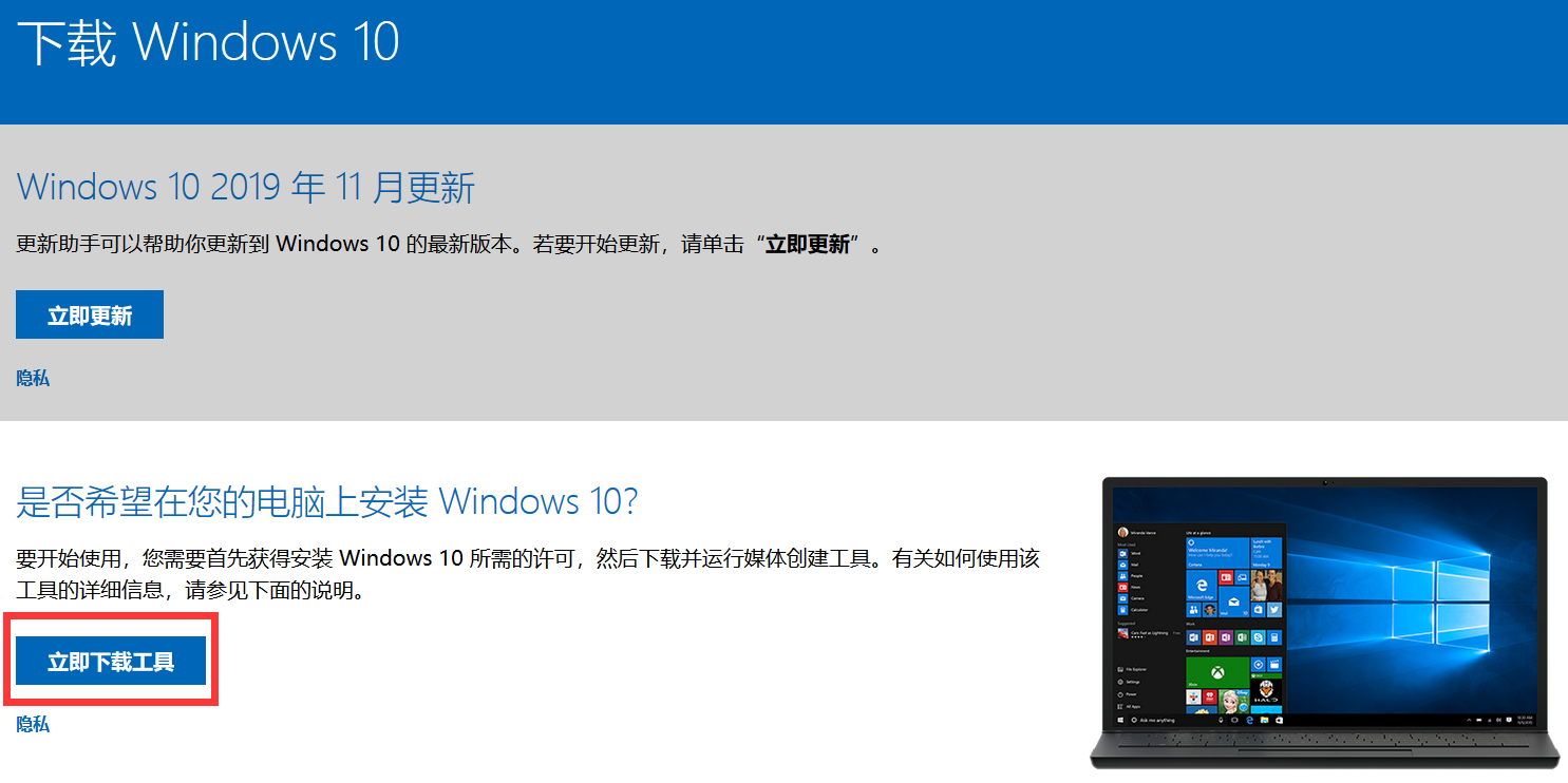 然后选择“立即下载工具”,该工具就是微软官方制作启动盘的工具,将会从官网下载系统,网速较慢(相比于2年前好像加快了,本次用时5分钟左右),但是系统肯定是干净的,近年来出现某些PE工具暗藏病毒,所以选择官网下载还是很安全的。