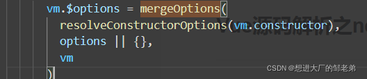 mergeOptions函数的两个参数分别为resolveConstructorOptions(vm.constructor)的返回值和options配置项所以我们先看看resolveConstructorOptions函数返回了什么以及它做了哪些事情