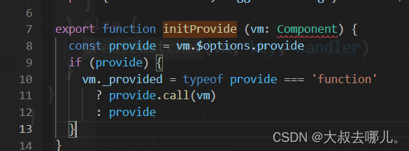 模板渲染时provide会挂在vm.$options.provide上 然后挂在vm._provided 很简单