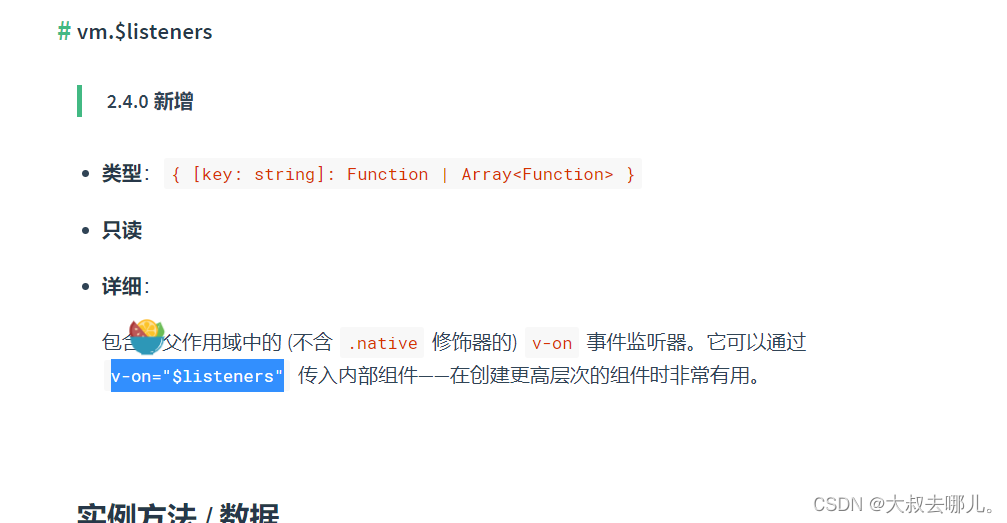 $listeners作用类似就是将爷爷组件传给父组件的事件再在父组件通过v-on="$listeners" 传给子组件