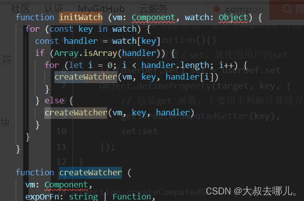 全局sharedPropertyDefinition对象就是Object.defineProerty的参数 noop是一个支持三个可选参数的空函数 isServerRendering判断是否为ssr环境 一般使用createComputedGetter构建getter
