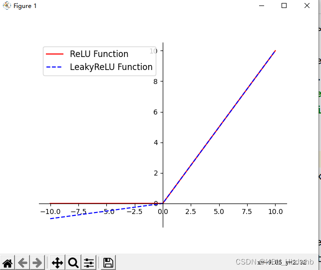 可视化ReLU和带泄露的ReLU的函数的代码实现和可视化如下: