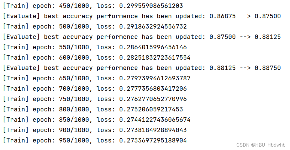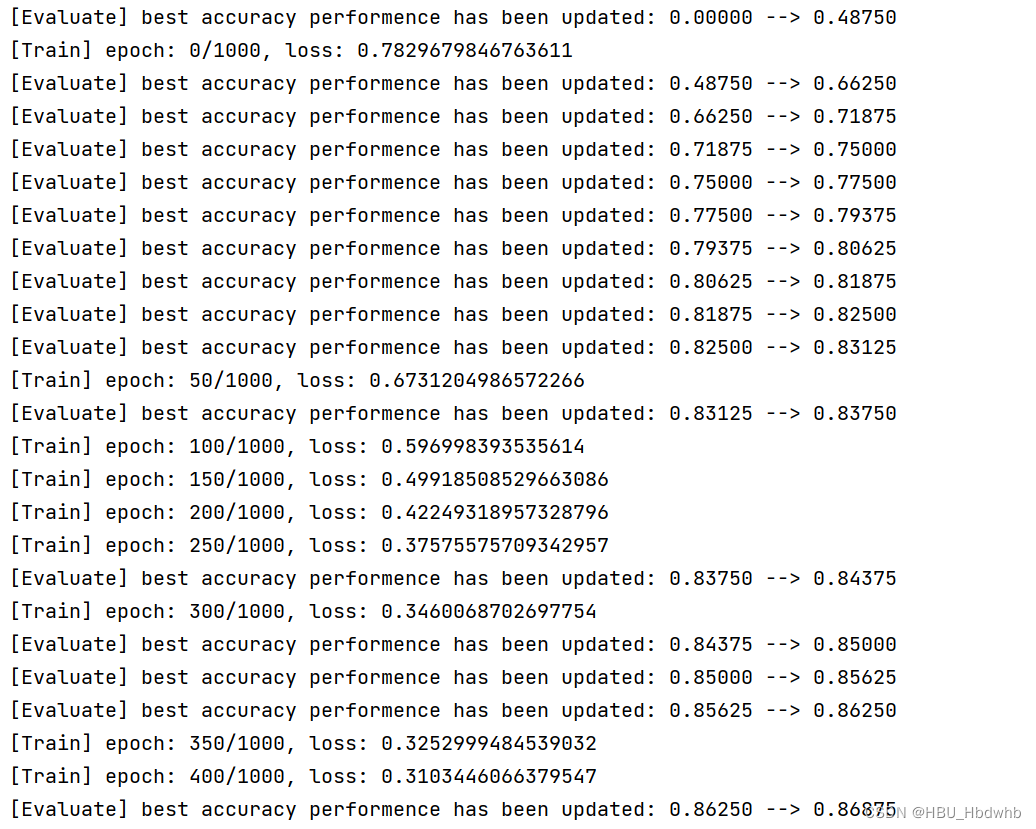 import osclass RunnerV2_1(object):def __init__(self, model, optimizer, metric, loss_fn, **kwargs):self.model = modelself.optimizer = optimizerself.loss_fn = loss_fnself.metric = metric# 记录训练过程中的评估指标变化情况self.train_scores = []self.dev_scores = []# 记录训练过程中的评价指标变化情况self.train_loss = []self.dev_loss = []def train(self, train_set, dev_set, **kwargs):# 传入训练轮数,如果没有传入值则默认为0num_epochs = kwargs.get("num_epochs", 0)# 传入log打印频率,如果没有传入值则默认为100log_epochs = kwargs.get("log_epochs", 100)# 传入模型保存路径save_dir = kwargs.get("save_dir", None)# 记录全局最优指标best_score = 0# 进行num_epochs轮训练for epoch in range(num_epochs):X, y = train_set# 获取模型预测logits = self.model(X)# 计算交叉熵损失trn_loss = self.loss_fn(logits, y) # return a tensorself.train_loss.append(trn_loss.item())# 计算评估指标trn_score = self.metric(logits, y).item()self.train_scores.append(trn_score)self.loss_fn.backward()# 参数更新self.optimizer.step()dev_score, dev_loss = self.evaluate(dev_set)# 如果当前指标为最优指标,保存该模型if dev_score > best_score:print(f"[Evaluate] best accuracy performence has been updated: {best_score:.5f} --> {dev_score:.5f}")best_score = dev_scoreif save_dir:self.save_model(save_dir)if log_epochs and epoch % log_epochs == 0:print(f"[Train] epoch: {epoch}/{num_epochs}, loss: {trn_loss.item()}")def evaluate(self, data_set):X, y = data_set# 计算模型输出logits = self.model(X)# 计算损失函数loss = self.loss_fn(logits, y).item()self.dev_loss.append(loss)# 计算评估指标score = self.metric(logits, y).item()self.dev_scores.append(score)return score, lossdef predict(self, X):return self.model(X)def save_model(self, save_dir):# 对模型每层参数分别进行保存,保存文件名称与该层名称相同for layer in self.model.layers: # 遍历所有层if isinstance(layer.params, dict):torch.save(layer.params, os.path.join(save_dir, layer.name + ".pdparams"))def load_model(self, model_dir):# 获取所有层参数名称和保存路径之间的对应关系model_file_names = os.listdir(model_dir)name_file_dict = {}for file_name in model_file_names:name = file_name.replace(".pdparams", "")name_file_dict[name] = os.path.join(model_dir, file_name)# 加载每层参数for layer in self.model.layers: # 遍历所有层if isinstance(layer.params, dict):name = layer.namefile_path = name_file_dict[name]layer.params = torch.load(file_path)