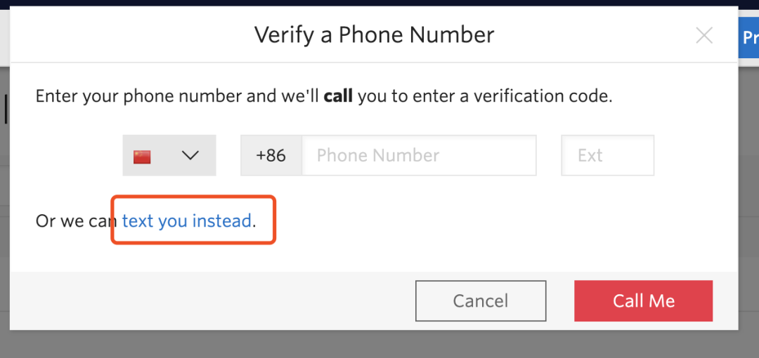点击验证号码的按钮后,在弹出的页面选择左下方的 text you instead,也就是用短信验证码来验证新添加的号码,你要发给女朋友,当然,这个接收的号码都填女朋友的了。