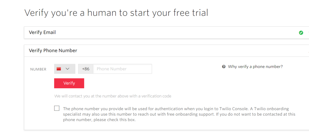 要发送短信,我们需要现在 twilio 官网注册一个账号。