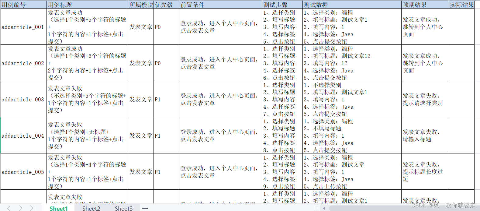 登录功能新增文章功能的测试点提取以及测试用例编写