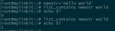 list_contains() {local var="$1"local str="$2"local valeval "val=\" \${$var} \""[ "${val%% $str *}" != "$val" ]