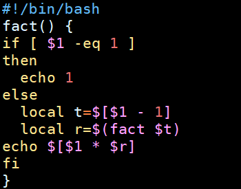 elselocal t=$[$1 - 1]local r=$(fact $t)