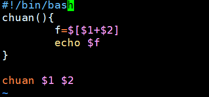 chuan(){f=$[$1+$2] #shell脚本内的参数再传递给函数内参数echo $f