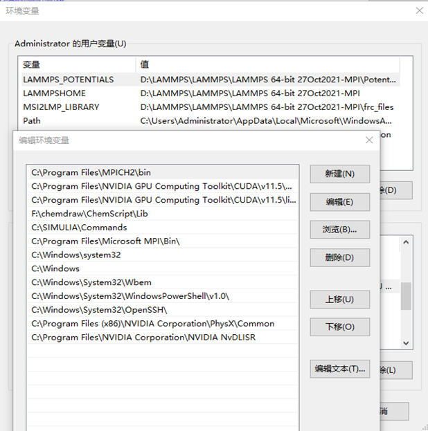 步骤3. 配置环境变量,将mpich2的bin目录的地址添加到LAMMPS_POTENTIALS的环境变量中