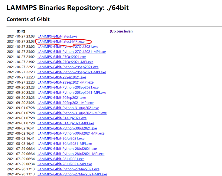 步骤1. 下载对应操作位数的并行版本的LAMMPS并安装(后面带MPI的是并行版本)
