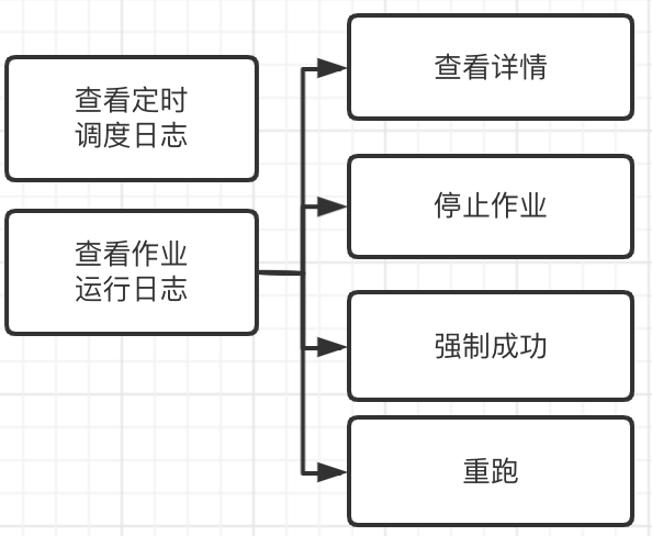 日志管理: 可查看定时调度情况;可查看作业运行情况;可停止作业;可重跑单个作业