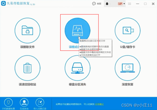 第一步:打开“失易得数据恢复”软件,选择误格式化磁盘扫描模式,