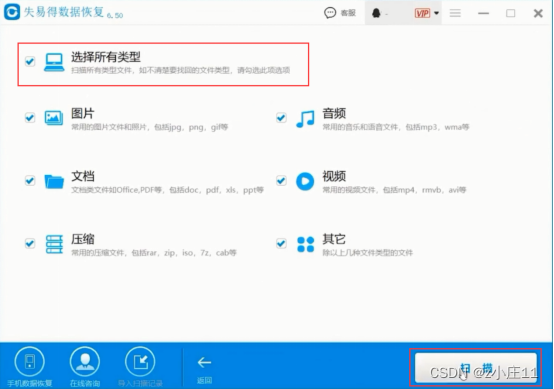 接着根据自己情况选择相应类型,点击扫描后就会开始进行扫描,
