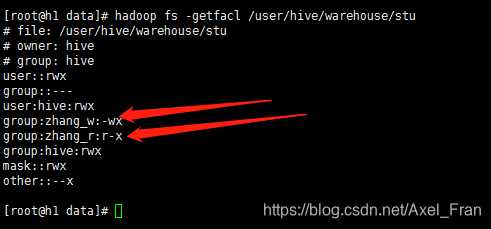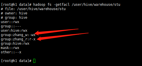 hsdf dfs -getfacl /目标文件 #用来查看目前这个文件的权限有哪些