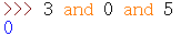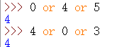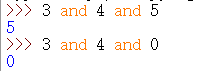 总结:and运算符是一个一个的从左往右判断,遇到False时直接跳出判断,输出0,否则输出判断 的最后一个值