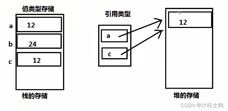 一个引用类型的变量不存储它们所代表的实际数据,而是存储实际数据的引用。引用类型分两步创建:首先在堆栈上创建一个引用变量,然后在堆上创建对象本身,再把这个内存的句柄(也是内存的首地址)赋给引用变量。