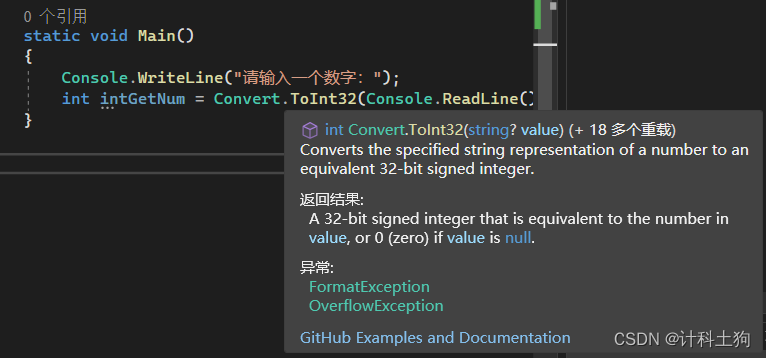 {static void Main(){Console.WriteLine("请输入一个数字:");int intGetNum = Convert.ToInt32(Console.ReadLine());}
