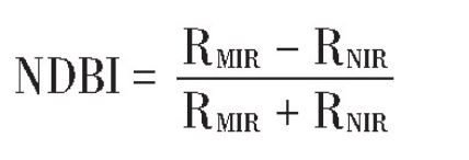 NDBI是查勇等在杨山提出的仿归一化植被指数基础上提出的, 它可以较为准确地反映建筑用地信息, 数值越大表明建筑用地比例越高, 建筑密度越高。计算公式如下:
