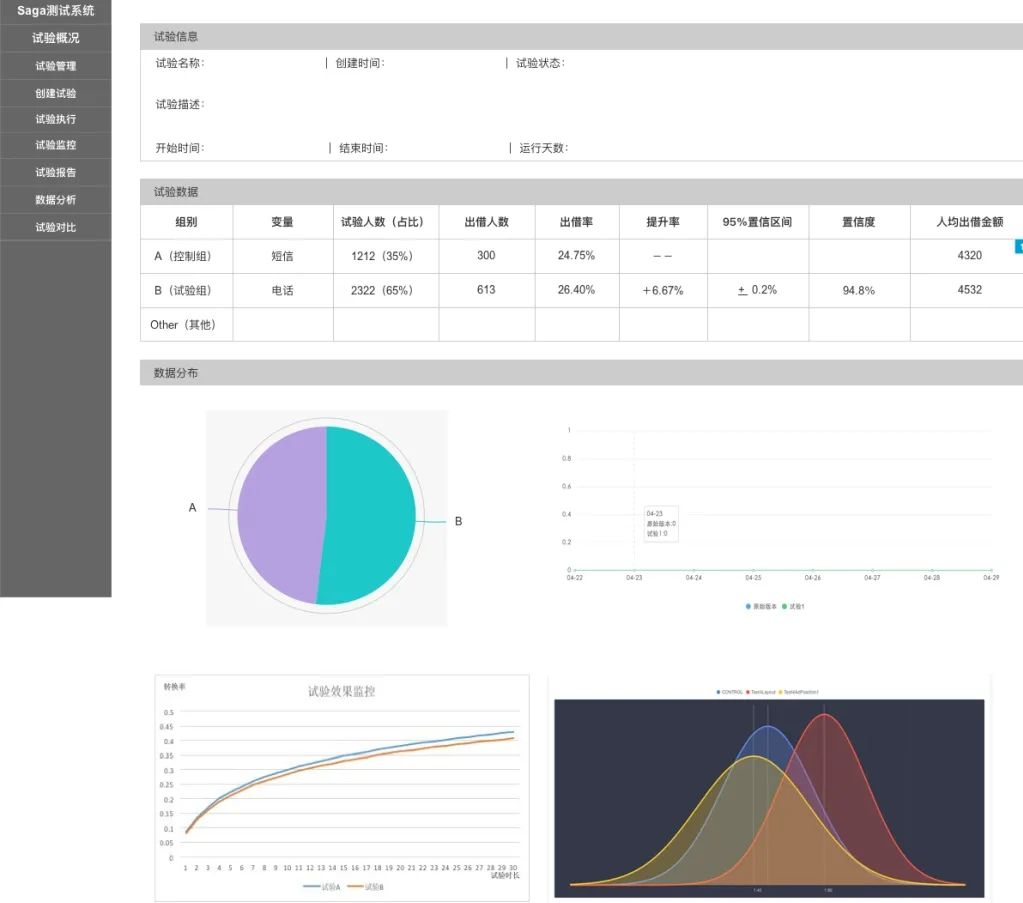 如图9所示,试验报告展现试验的进展情况,包括试验的基础信息,多少用户参与试验,各组占比,运行天数,开始时间、各组的指标情况以及结论。试验分析模块如果有技术实力可以做到实时更新,但实在没有相应资源通过T+1更新也是能接受的。