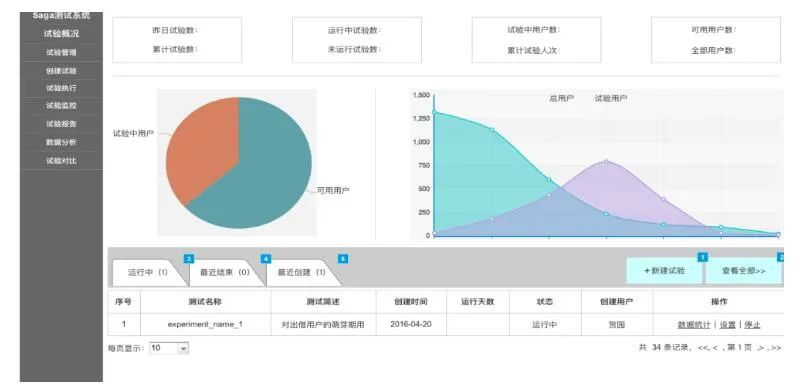 饼图:为当前时间,系统中实验中用户和可用用户以及占用用户的占比情况。