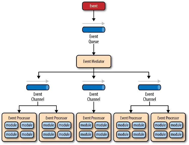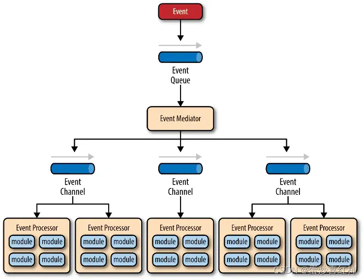 4. 事件处理器(event processor):实现业务逻辑,处理完成后会发出事件,触发下一步操作