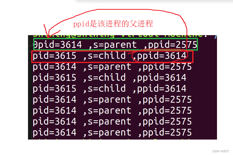 实现功能:fork 函数会新生成一个进程,调用 fork 函数的进程为父进程,新生成的进程为子进程。 在父进程中返回子进程的 pid,在子进程中返回 0,失败返回-1。子进程和父进程代码完全一样,父进程将要执行哪句话,子进程也将执行哪句。我们通过一段代码来理解: