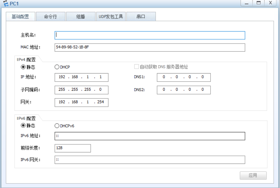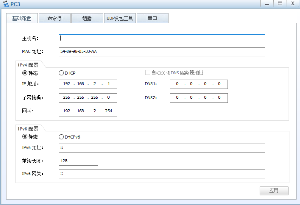 - 对应的端口进行配置IP地址,注意点是,PC机连接路由的端口,皆配置为PC机的网关。