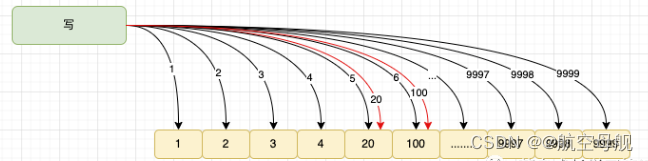 写入数据之后,后执行的协程同样的往这个索引位写入数据,就导致前面的协程写入数据被后面的协程给覆盖掉。如下图
