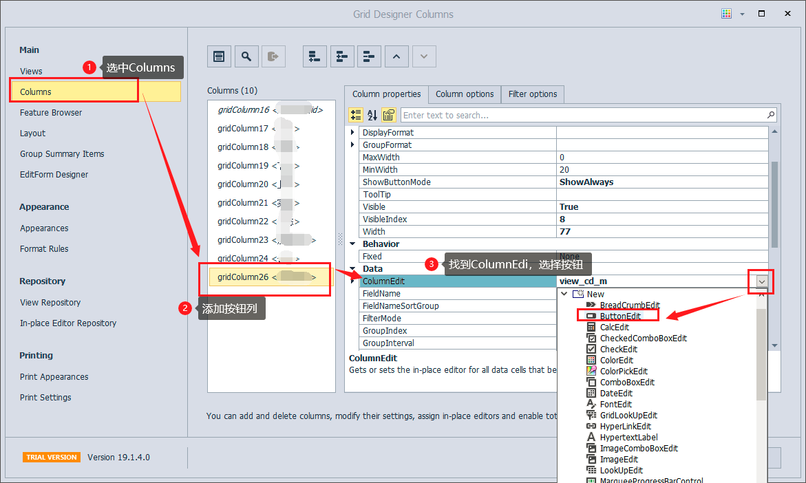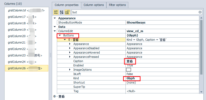 3、把Buttons的Kind属性设置为Glyph;Caption显示按钮名称