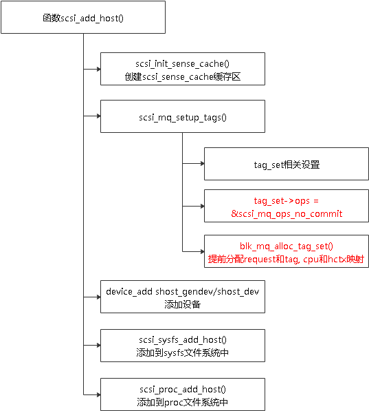 Scsi host的添加指的是将scsi host添加到系统中,主要通过函数scsi_add_host()实现。过程如下: