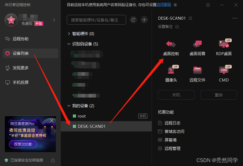 1.远程机器和被远程机器的向日葵都用同一个账号登录(微信或手机登录都行),