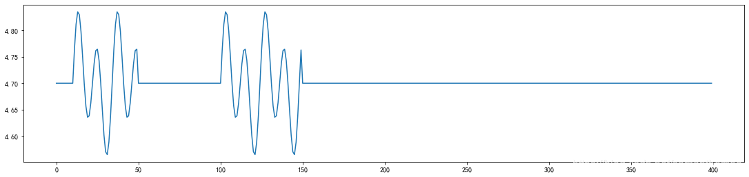 for (i,j) in seg:n = j-i# n=40,40 50x=np.arange(n)season1 = 1*np.array([math.sin(i/period_frequency*math.pi) for i in x])season2 = 0.5*np.array([math.sin(i*0.5/period_frequency*math.pi) for i in x])#noise = np.random.normal(0,0.2,len(x))#y= season1+seadon2+noise 可以叠加多尺度周期和噪声y = season1+season2for idx in range(i, j):ybase[idx] = ybase[idx] + y[idx-i] * period_multiply