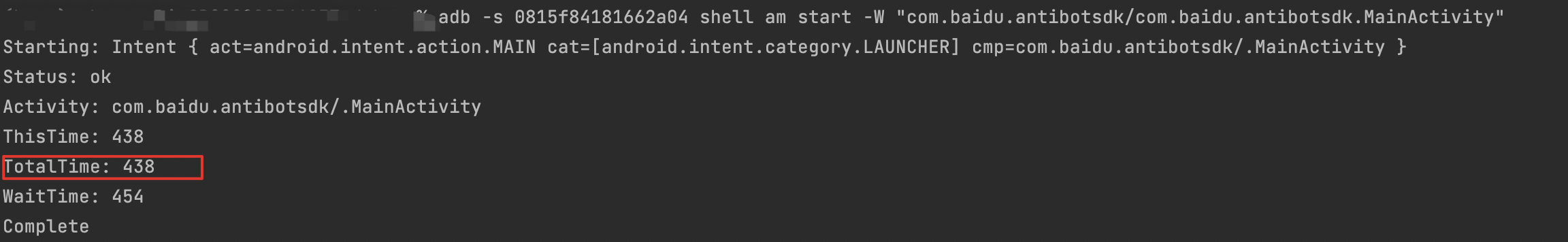 # 0815f84181662a04 deviceID adb -s 0815f84181662a04 shell am start -W "com.baidu.antibotsdk/com.baidu.antibotsdk.MainActivity"
