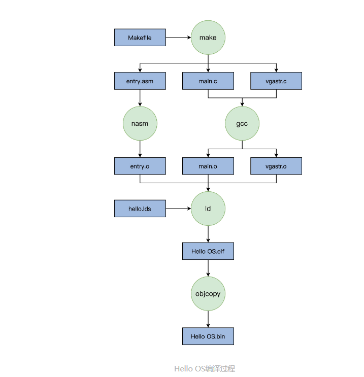 HelloOS的主要功能就是向屏幕上打印HelloOS,功能跟学习C语言打印“HelloWorld”一样,但此时的HelloOS 没有标准库的支持,printf需要自己实现。