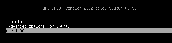 1、将编译得到的HelloOS.bin拷贝到/boot下
