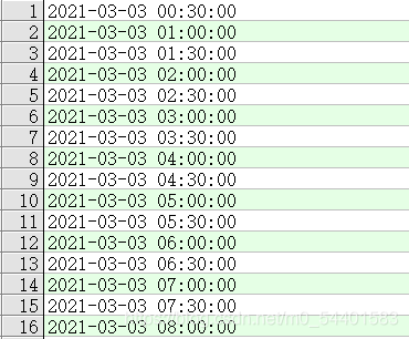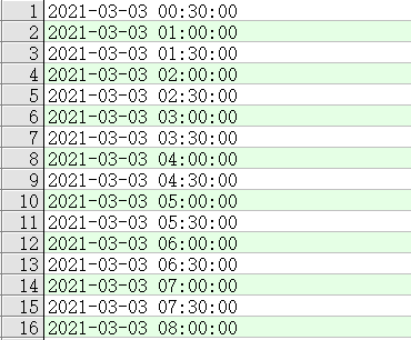 SELECT TO_CHAR(TRUNC(SYSDATE, 'DD') + (30 / (24 * 60) * ROWNUM),'YYYY-MM-DD hh24:MI:SS')FROM 表名WHERE ROWNUM <= 48 / 30;
