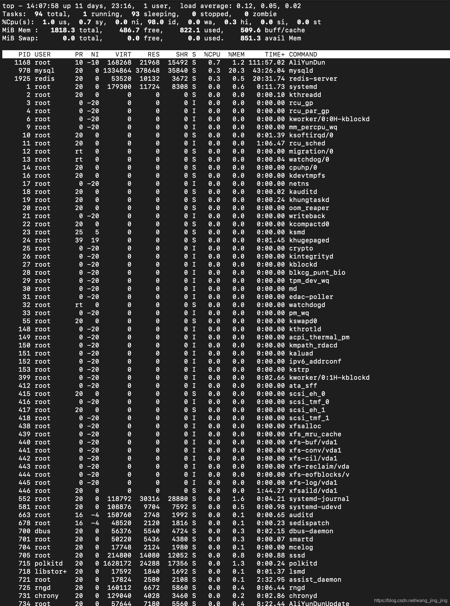 | load average: 0.12, 0.05, 0.02 | load average后面的三个数分别是1分钟、5分钟、15分钟的负载情况。 | |